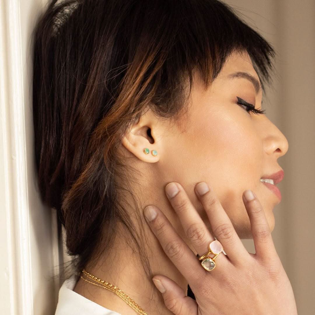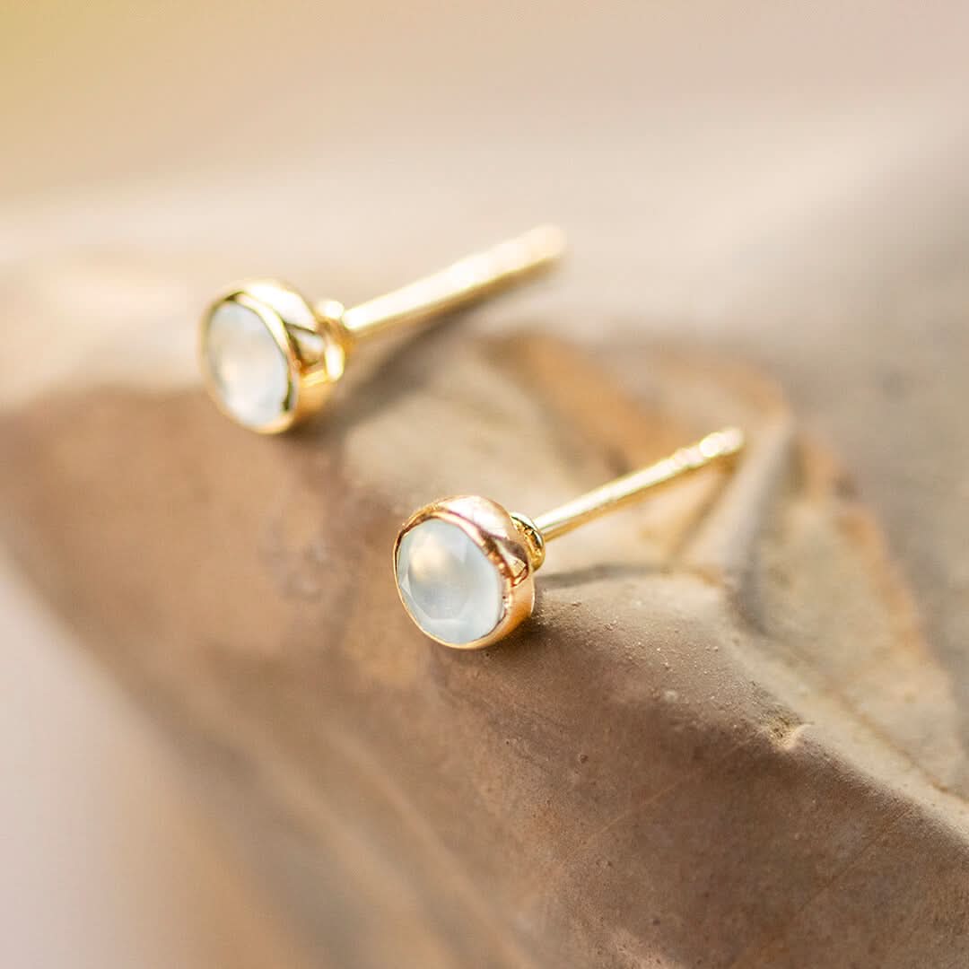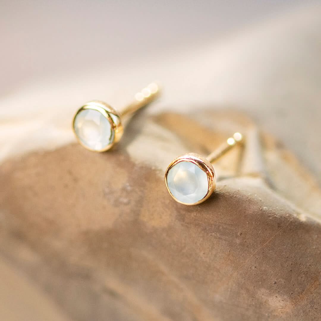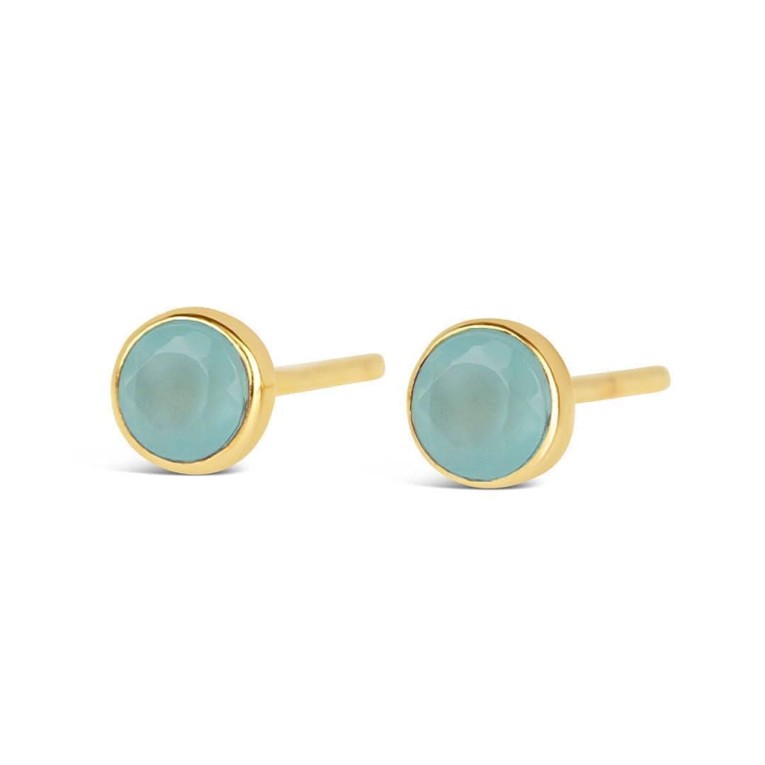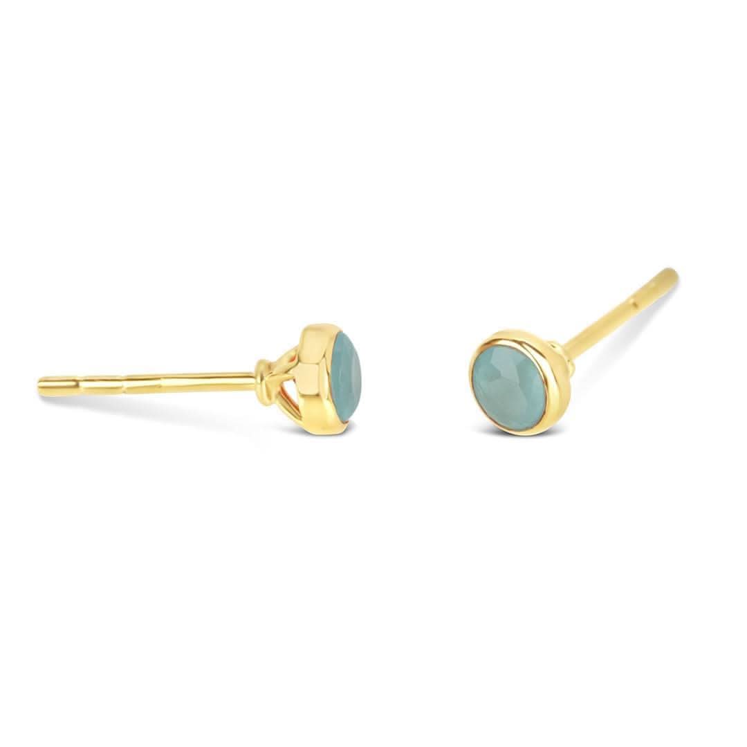 Our Aqua Chalcedony Mini Stud Earrings are set in a solid 18-carat gold vermeil setting. These pretty stud earrings feature a real aqua chalcedony gemstone, the birthstone for March, making them the perfect personalised gift for a March birthday, or for a Pisces or Aries star sign. Designed to be worn singly or as part of an earring stack, these aqua chalcedony earrings are the ideal finish touch for any outfit. The Aqua Chalcedony gemstone symbolises friendship and courage.