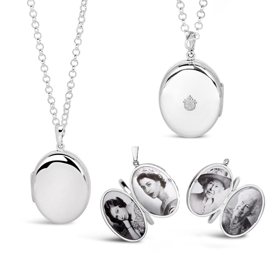 This locket is also available without the QEII hallmark. Upload your own photos and engraving using the app on this page or email them to us later at media@lilyblanche.com