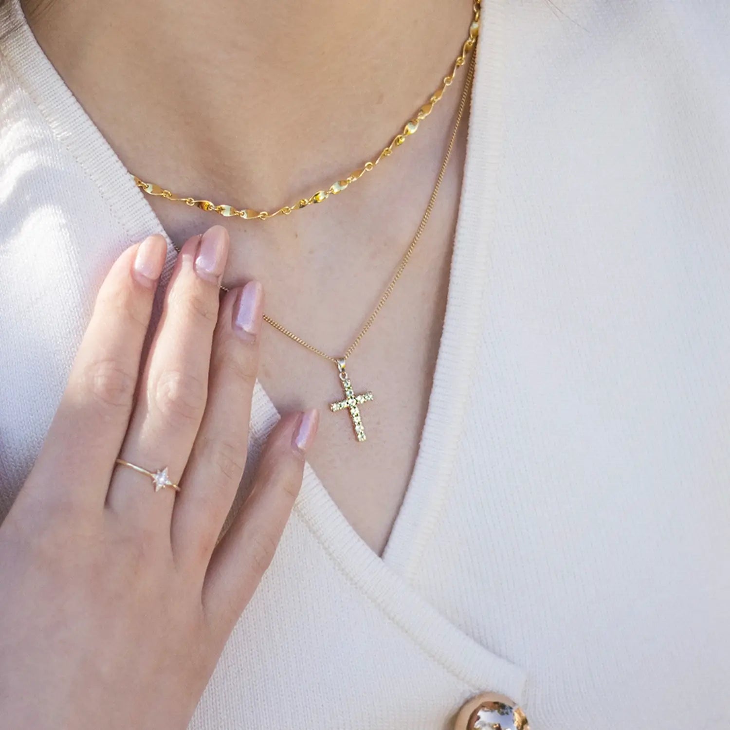 Each Peridot in the Lily Blanche Peridot Cross Necklace is 3mm in diameter, precision set to create a stunning piece. The design blends simplicity with sophistication, ensuring both durability and timeless elegance. The pendant measures 27mm in length (including the bail), 15mm in width, and 2.5mm in thickness. Expertly set to catch the light, the Peridots offer a subtle, captivating sparkle.