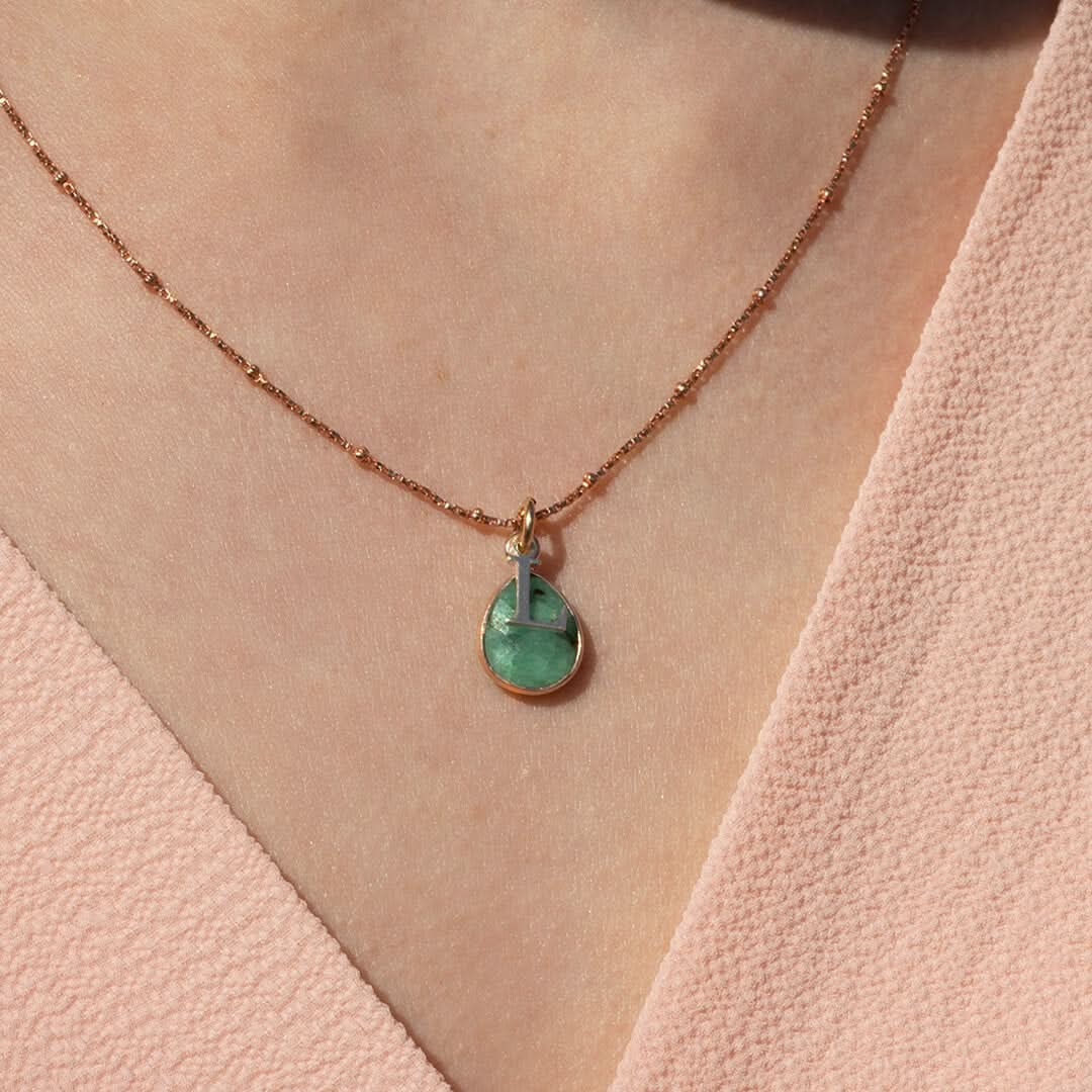 Our Chrysoprase Necklace is simple yet elegant, with a beautiful gemstone that can be personalised with a gold initial. The necklace is durable and long-lasting, ensuring that you can enjoy wearing it for decades to come. We use only precious metal in our jewellery making it safe for those with sensitive skin.