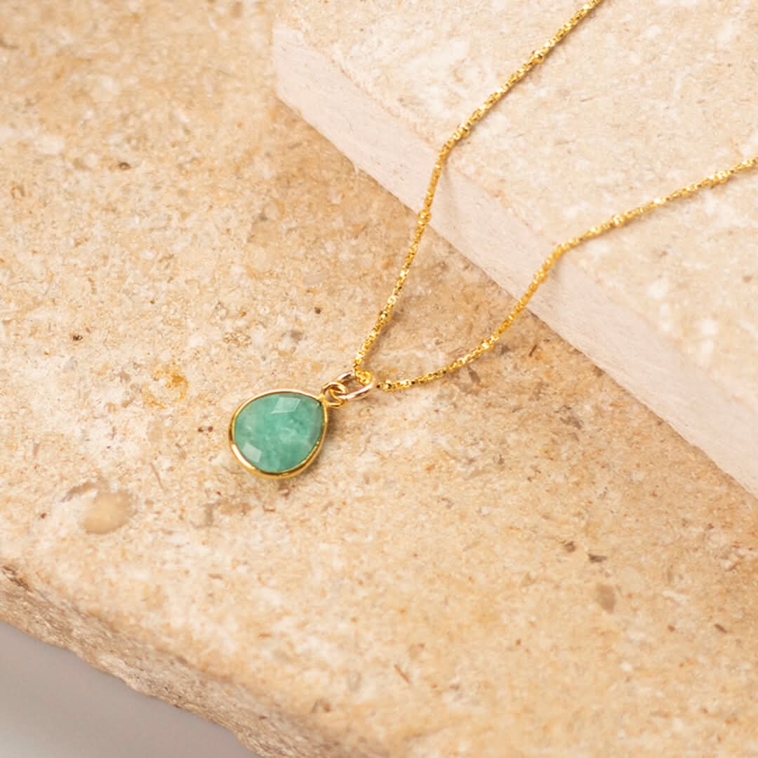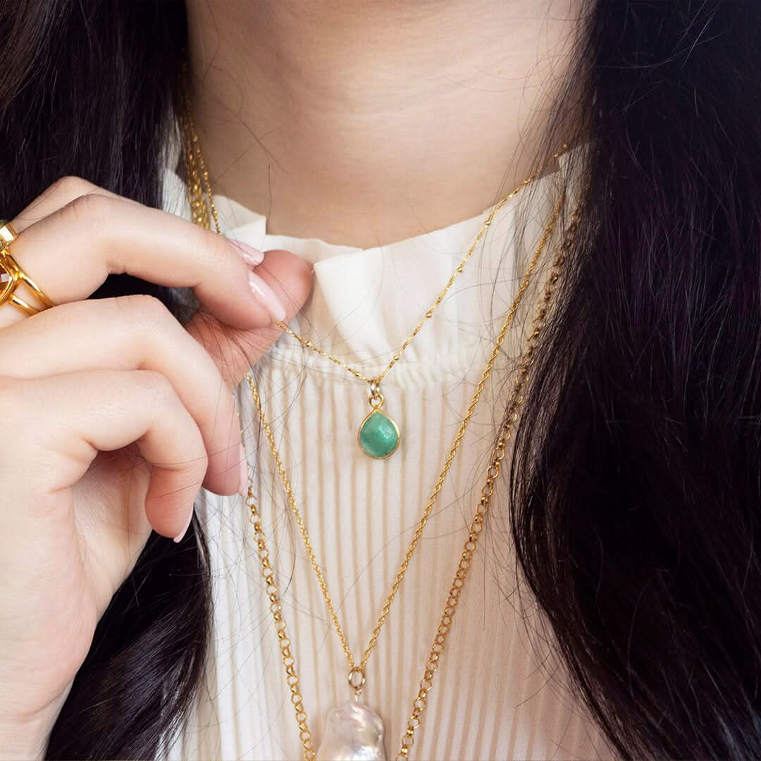 Looking for a charming and affordable jewellery gift which will surprise and delight? Our Chrysoprase Necklace in gold vermeil is the ideal gift. This pretty necklace features a 3-carat chrysoprase gemstone set in an 18-carat gold vermeil teardrop setting.