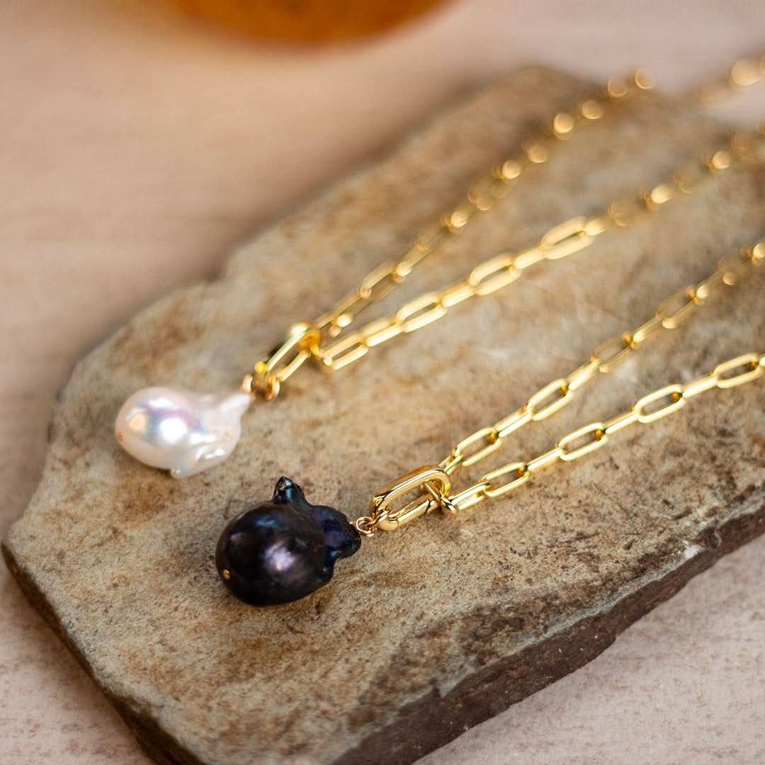 Whether you are restyling your favourite stack or refreshing your spring wardrobe, the Black Baroque Pearl Paperclip Chain Necklace is your ultimate style companion.