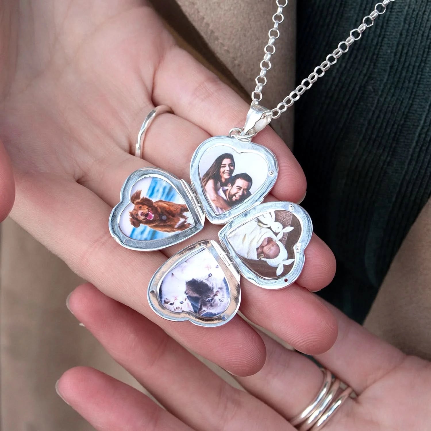 Choose our personalisation option and let us optimise, print and fit your photographs for a customised necklace. For a truly bespoke locket, add engraving at the checkout. Click to see personalisation and engraving inspiration