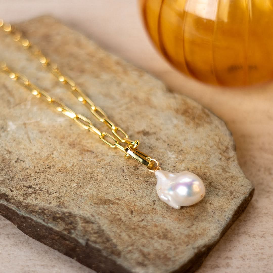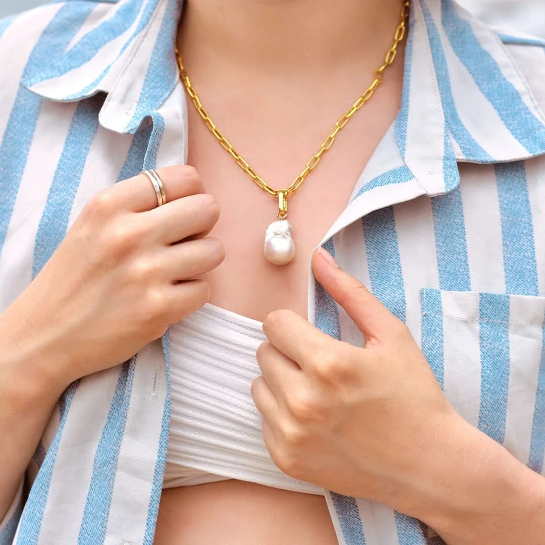 Whether you are restyling your favourite stack or refreshing your spring wardrobe, the White Baroque Pearl Paperclip Chain Necklace is your ultimate style companion.