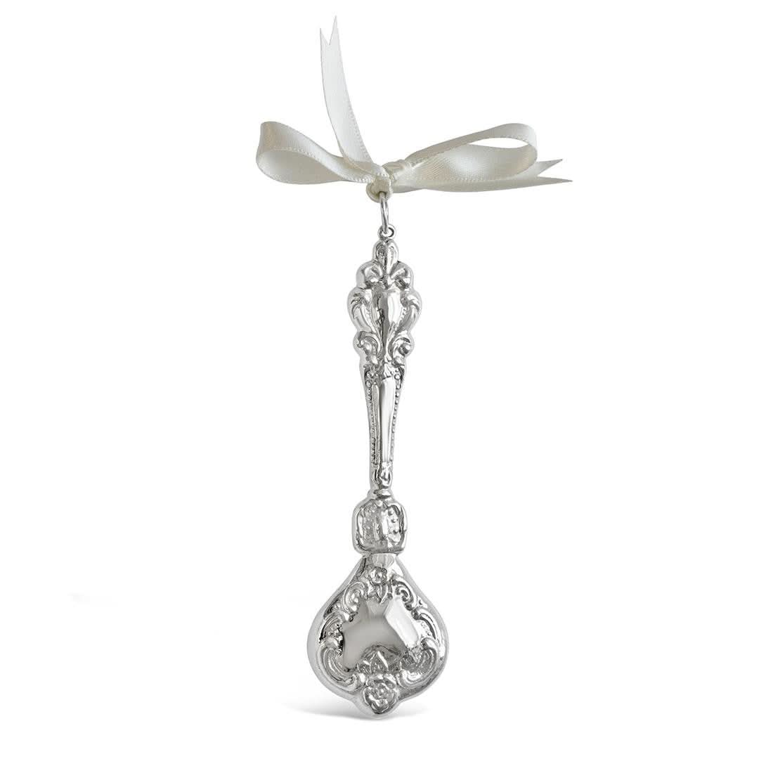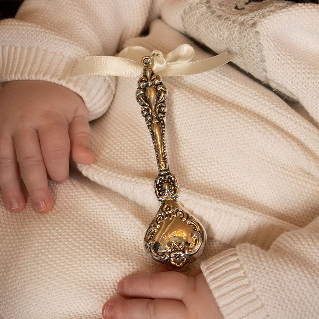 Our fabulous sterling silver baby rattle is an heirloom piece of great craftsmanship and the perfect way to welcome a little one to the world. The Lily Blanche silver baby rattle is based on a Victorian design which has been updated for 21st-century use. Sterling silver is traditionally used for new babies, baptism and christening gifts because of its sterile qualities as well as its preciousness and heirloom qualities. The vintage silver baby rattle is hallmarked by the Edinburgh Assay Office using the Edinburgh hallmark. The perfect gift for christenings, baptisms, baby showers and baby naming ceremonies, our vintage baby rattle is guaranteed to delight new mothers and will be treasured for years to come. Available with a choice of ribbons. Rattle length 10 cms. The rattle comes beautifully packaged in an ivory, ribbon-finished gift box. This baby rattle is suitable for all babies. A companion gift to baby's first keepsake box. Gift options and free shipping available. Engraved items and non-returnable. See all Christening gifts here